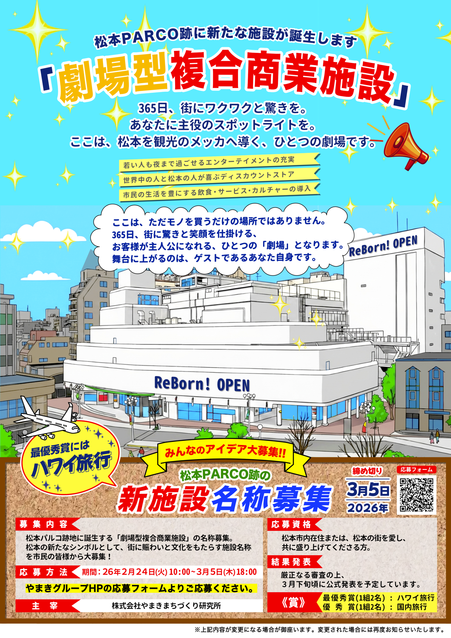 2026.02.20 松本PARCO跡に誕生する劇場型複合商業施設の「名称募集」のお知らせ